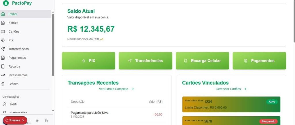 Com a Pacto Pay, as empresas têm acesso a uma variedade de serviços que incluem a emissão de boletos, cobranças automatizadas e soluções de maquininhas para pagamentos. Esses recursos são essenciais para o dia a dia das empresas modernas, facilitando o fluxo de caixa e a gestão de recebíveis. Além disso, a plataforma oferece opções de pagamentos online, links de pagamento e QR Code, permitindo que os clientes realizem transações com facilidade e segurança.